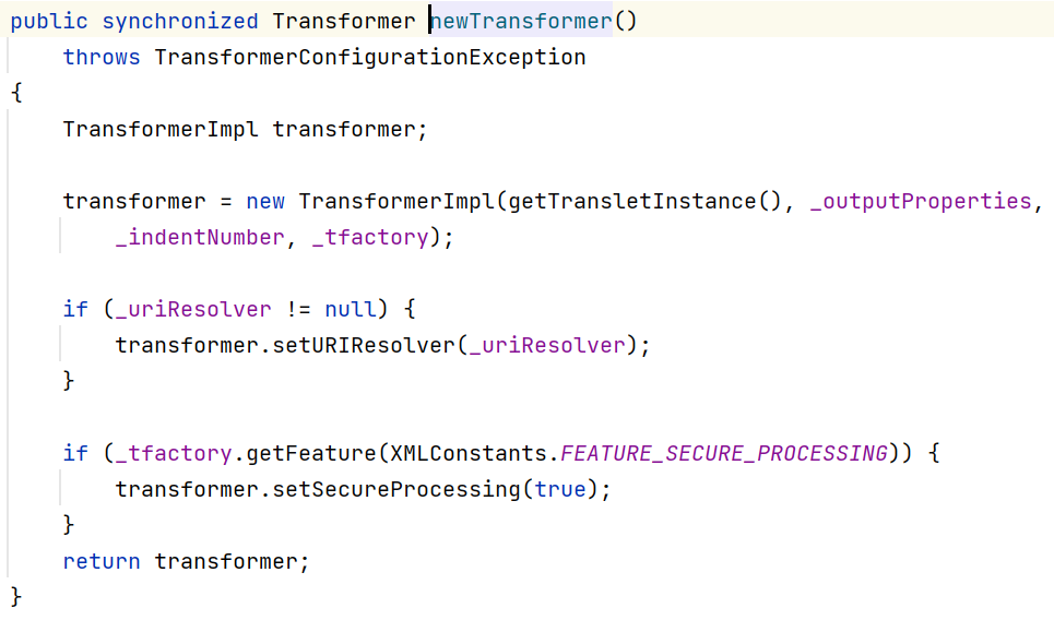 TemplatesImpl#getOutputProperties=>TemplatesImpl#newTransformer=>TemplatesImpl#getTransletInstance=>emplatesImpl#defineTransletClasses=>TransletClassLoader#defineClass